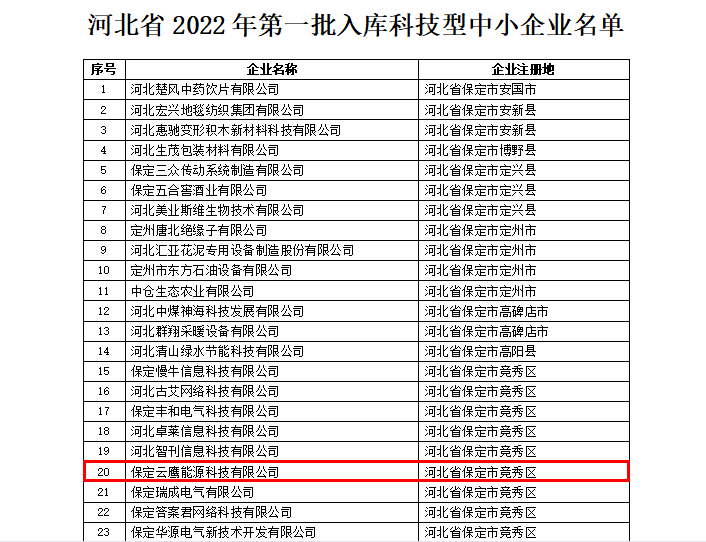 日前,河北省科技廳官網(wǎng)公告顯示,云鷹運(yùn)維成為河北省2022年第一批進(jìn)入“科技型中小企業(yè)信息庫”企業(yè),納入全國科技型中小企業(yè)庫管理,彰顯了公司在新能源電站智慧運(yùn)維技術(shù)領(lǐng)域的突出表現(xiàn)。